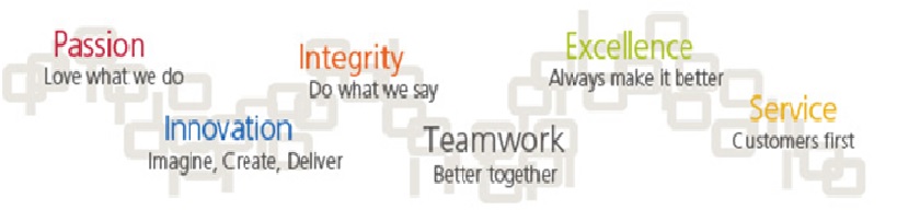 Our core values define our beliefs, guide our decisions, and drive our actions. They are the glue that connects us worldwide. They inspire us to be a powerful force in the industry and a great place to work. Our values are seen, heard, and felt every day in our policies, our systems, our operations and our service to customers.
